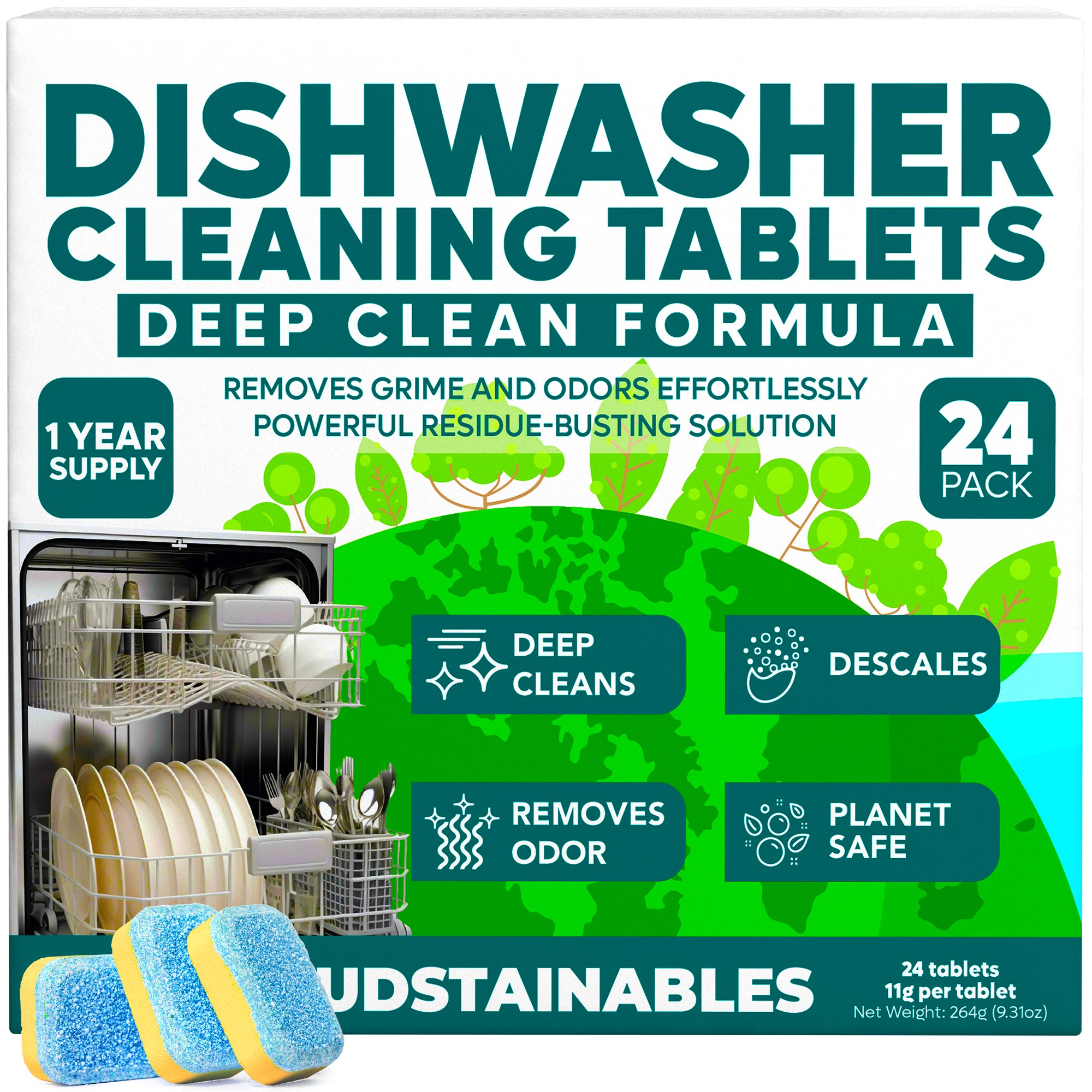 - Each dishwasher cleaner and deodorizer tablet powers through grease, grime, and buildup—helping maintain spray arms, filters, and hidden components for better dishwasher performance. Designed for monthly deep cleaning.