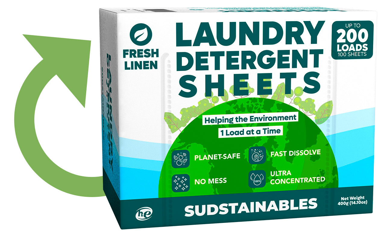Experience a fresh, soft, and ultra-clean load of laundry each time you use Sudstainables laundry detergent sheets!